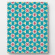 An attractive geometric pattern with asterisk like shapes, hexagons and triangles in a nicely balanced pallet of red, white, amber, brown and aqua green. The design also has a subtle paper like texture giving it a nice traditional media effect.