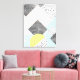 This abstract design features a collage of geometric shapes, pastel colours, polka dots and concrete.
