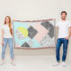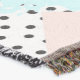 This abstract design features a collage of geometric shapes, pastel colours, polka dots and concrete.