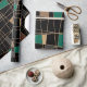 Geometric, abstract , black, turquoise , gold , brown, stripes , lines , plaid, black and turquoise