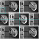 Stylish geometric fabric features a brick repeat of an architectural black and white photograph. The large open circle cut into the foreground concrete wall always stopped me. With just the right angle of view through the circular window, the zigzag of the fire escape stairs of the next building became visible. A collection of mesmerizing geometry was contained within and surrounding the circle: lines, angles, squares, rectangles, and triangles.