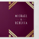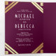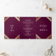 Geometric Art Deco Plum Gold QR Code Wedding Tri-Fold Invitation