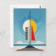 This graphic work is inspired by the Bauhaus movement with an abstract geometric composition on a blue-green background. A stylized architectural structure rises from a black staircase base, supporting a harmonious set of shapes: a white semi-circle, a yellow segment, a triangular red shape, and various linear elements. The white cloud shapes on the horizon create a spatial dimension, evoking a simplified landscape where pure geometric elements interact in perfect balance.