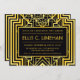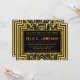 These bachelorette party invitations feature an intricate geometric frame, geometric patterns, a black and gold colour palette, and other stylistic details all inspired by Art Deco and the roaring twenties. You can customize the sample text fields to your liking.