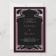 The invitation features a striking black background, which serves as the perfect backdrop for the intricate art deco design. The inner border is a beautiful shade of pink that adds a pop of colour and creates a stunning contrast against the black background. This is then surrounded by a black border and a thin pink border that completes the elegant design.