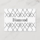Black and White Geometric Diamond Pattern Business Card designed by Nisha Prabhu. Fully Customizable. Personalize with your details. This Black and White Geometric Diamond Pattern Business Card is a sleek and professional way to showcase your business information. The card features a bold and eye-catching diamond pattern in black and white, adding a modern and sophisticated touch. The geometric design creates a sense of structure and precision, reflecting the professionalism and attention to detail of your business. The black and white colour scheme is classic and versatile, making it suitable for a wide range of industries and professions. Whether you are attending networking events, conferences, or simply meeting potential clients, this Black and White Geometric Diamond Pattern Business Card will make a statement. Its stylish design and professional appearance will help you stand out from the competition and leave a lasting impression on those you meet.