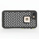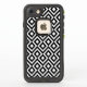 Protect your iPhone 7 with a waterproof, shock absorbing LifeProof® case featuring a black and white meander pattern with a window to showcase the Apple logo on the back of the phone. This stylish black and white geometric pattern is an original ornamental design. White meanders angle around black diamonds containing white diamonds. Black zigzags provide subtle separation between the winding paths.