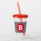 Geometric Black and White Pattern Red Monogram Acrylic Tumbler