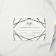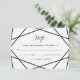 This simple, stylish wedding RSVP card features a black diamond geometric shape on a white background, and modern typography in black.