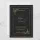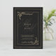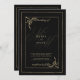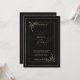 Geometric black gold bow monogram initials wedding invitation