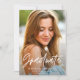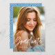 Geometric blue photo graduation elegant script announcement