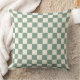 Geometric Checkerboard Pattern sage green ivory Throw Pillow