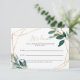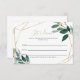This geometric chic foliage wedding song request card is perfect for a rustic wedding. The design features green eucalyptus foliage adorning a gold geometric frame.