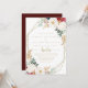 This geometric classic gold floral Spanish wedding invitation is perfect for a rustic wedding. The design features watercolor white, burgundy and gold flowers and berries with green foliage arranged into elegant bouquets.