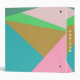 This custom recipe binder features a modern colourful cover design with fun abstract geometric triangles in a bright spring and summer colour palette of pink, green, and blue. Personalize it with your name. Great gift idea.