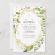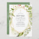 Trendy baptism invite with gold geometric frame and sage green watercolor wash reverse designed to be quickly and easily customized to your event specifics.