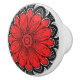 Geometric Daisy Pattern in Red Black & White Ceramic Knob