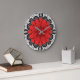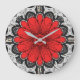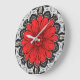 Geometric Daisy Pattern in Red Black & White Large Clock