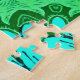 Puzzle in a geometric daisy pattern in turquoise and dark and light emerald green