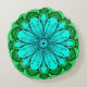 Geometric Daisy Pattern in Turquoise and Green Round Pillow