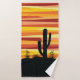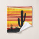 Abstract geometric desert sunset illustration with yellow, orange and red diagonal stripes and cactus decoration. Add your name/monogram or delete the text.
