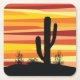 Abstract geometric desert sunset illustration with yellow, orange and red diagonal stripes and cactus decoration. Add your name/monogram or delete the text.
