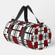 Geometric Design in Deep Red, White & Black Duffle Bag