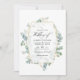 Wild forest woodland eucalyptus herbarium wedding invitation announcement with gold geometric frame and silver sage watercolor wash reverse. Ideal for any given theme or garden wedding. The GUEST DETAILS text on the reverse is optional. If you would rather remove it, scroll down to the bottom of "Personalize this template" and click on "Edit Using Design Tool". In the Design Tool you can edit, scale, delete or move any text or design elements you wish.