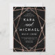 These elegant, glam wedding invitations have a black marble look background and a faux rose gold modern geometric design. All of your text is in white. An ultra stylish look for your wedding!