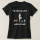 Illustration with geometric figures portraying a female veterinarian, a dog and two cats. There are also the words: Veterinary Medicine.