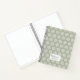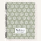 Personalized stylish notebook with your name, the title and date in elegant offblack calligraphy features a geometric floral pattern in sage green and offwhite. Perfect for sketching or keeping track of notes and ideas. Exclusively designed for you by Happy Dolphin Studio!