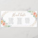 Wedding seating chart card in geometric watercolor flower design pattern.