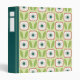 Binder with a geometric flower pattern on a light green background.