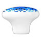 Ceramic knob in a geometric flower pattern in deep cobalt blue and navy / indigo, on white accented with turquoise
