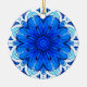 Geometric Flower Pattern in Cobalt Blue and Navy Ceramic Ornament