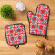 Geometric Four Red Leaves Oven Mitt & Pot Holder Set
