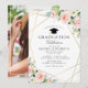 geometric frame blush pink floral graduation party invitation