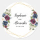 Geometric Frame Burgundy Navy Flowers Wedding Classic Round Sticker