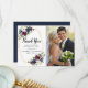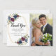 Geometric Frame Burgundy Navy Flowers Wedding Thank You Card