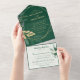 Geometric frame gold and green with Rsvp Wedding All In One Invitation