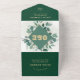 Geometric frame gold and green with Rsvp Wedding All in One Invitation