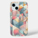 This vibrant and abstract mobile case features a colourful, geometric pattern with overlapping shapes, lines, and dots. The design is dominated by shades of pink, blue, orange, and yellow, creating a visually striking and energetic aesthetic. The intricate details and dynamic composition make this case a perfect choice for those who appreciate modern art and bold design.