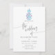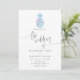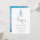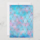 Sophisticated and elegant blue and lilac geometric pattern tropical beach wedding invitation with silver glitter accents.