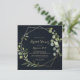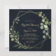 This geometric gold blue green bridal shower invitation is perfect for a simple wedding shower. The design features hand-painted beautiful green leaves in a dark blue background, adorning a gold geometric frame.