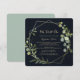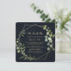 This geometric gold blue green we still do vow renewal invitation is perfect for a simple vow renewal ceremony and celebration. The design features hand-painted beautiful green leaves in a dark blue background, adorning a gold geometric frame.
