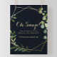 This geometric gold blue green wedding oh snap sign is perfect for a simple wedding or bridal shower. The design features hand-painted beautiful green leaves in a dark blue background, adorning a gold geometric frame.