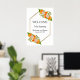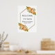 An elegant modern gold, blush, and orange floral wedding poster with the featured words, "Welcome to our beginning."