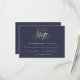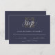 This simple, stylish wedding RSVP card features a faux gold diamond and modern typography on a midnight blue background.