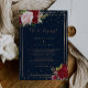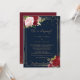 This geometric gold glitter and red elopement reception card is perfect for a rustic post elopement party. The artistic bordo marsala design features watercolor, green, pink, burgundy and blush roses assorted with greenery neatly arranged around geometric gold frames in a graceful and radiant flower bouquet. RSVP cards are sold separately.