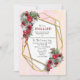 Rustic trendy summer colours of Blush, Burgundy, white roses and sage leaves on a Geometric Metallic-Gold frame for a spring or summer party invitation